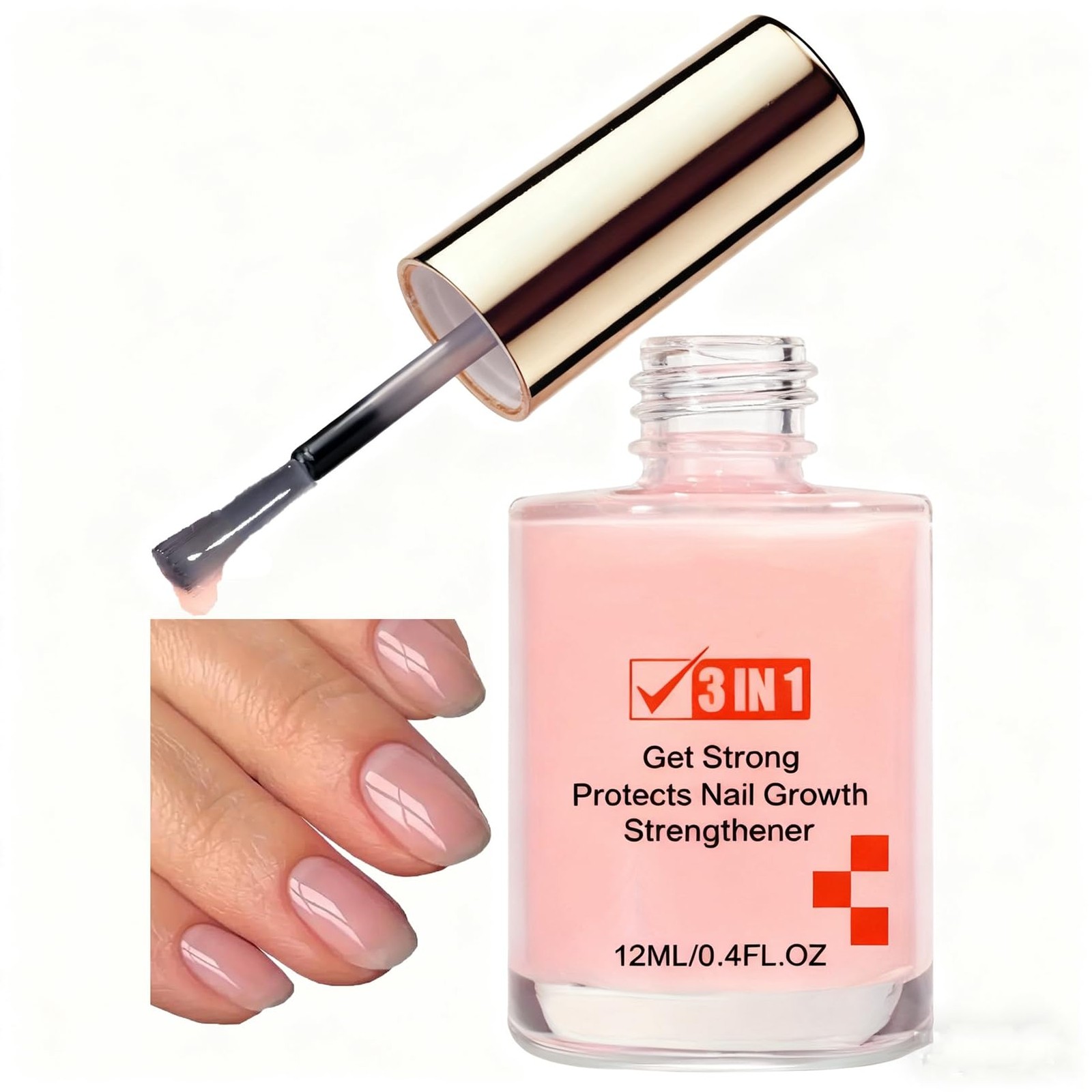 3 In 1 Nail Strengthener, Extra Strong Polish 12 ml (Pack of 1), Pink