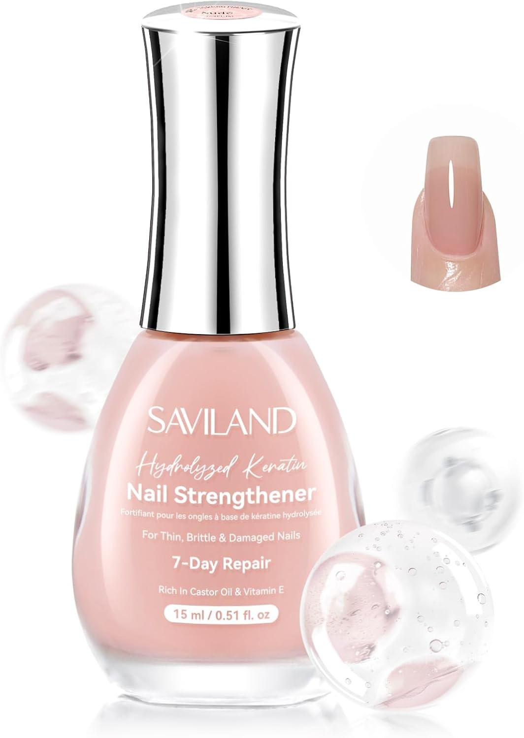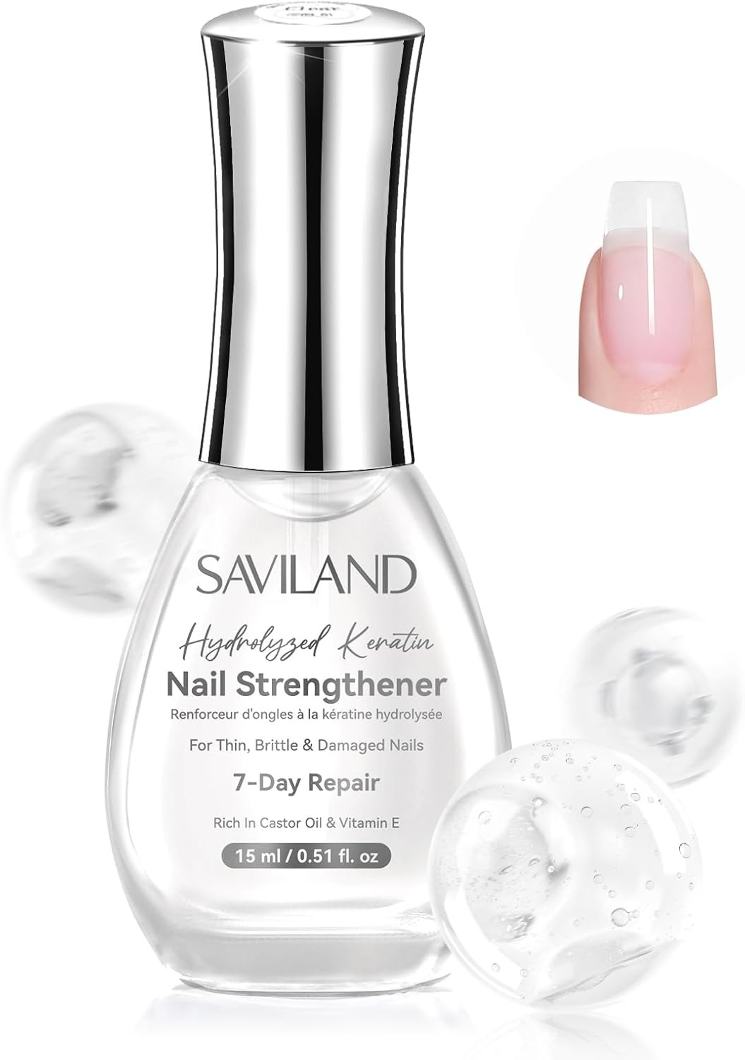 SAVILAND Nail Strengthener: 15ml Clear Nail Polish Strengthener for Weak & Dama