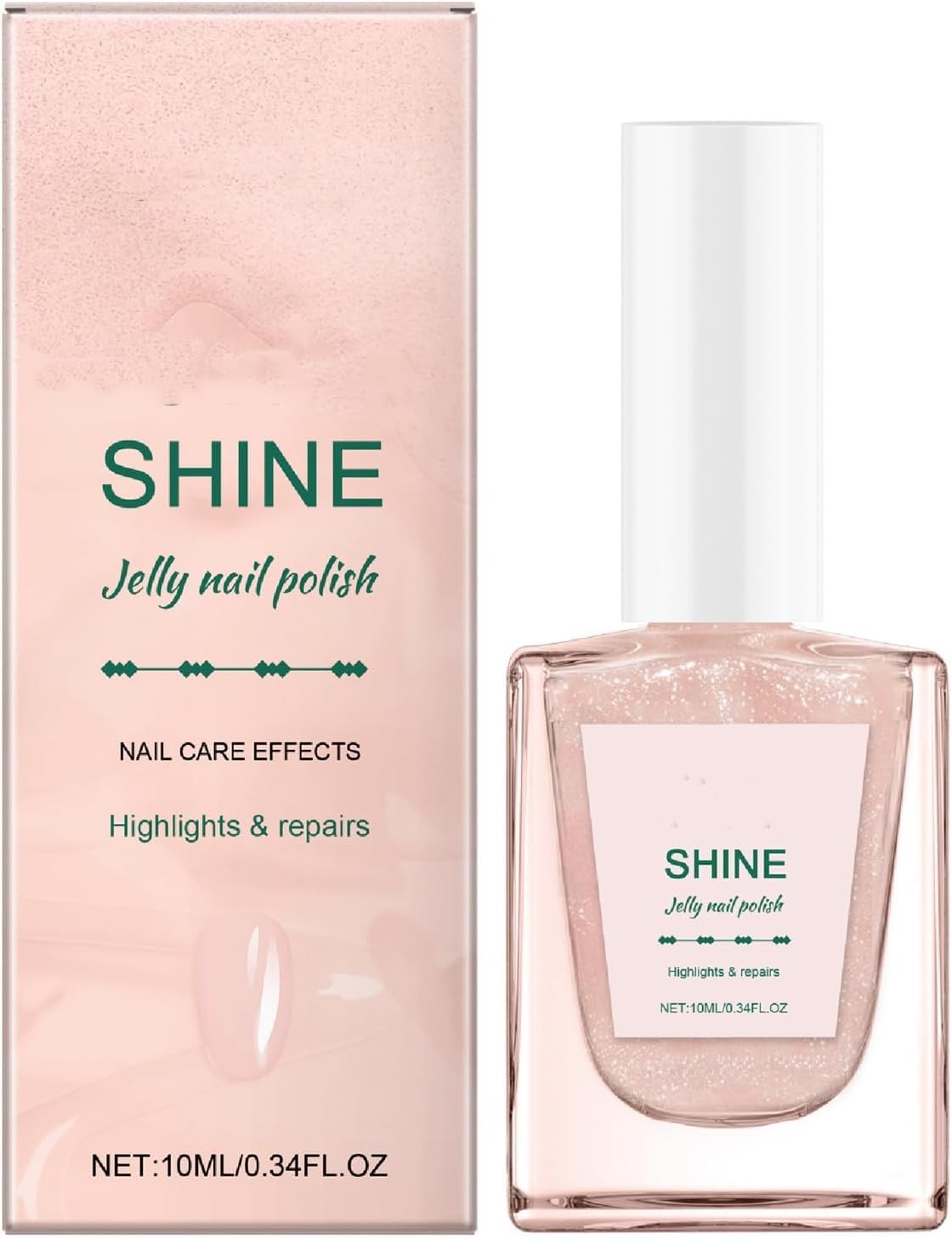 Shine Jelly Nail Polish & Strengthener - 2-in-1 Nude Pink Shimmer Highlighter,