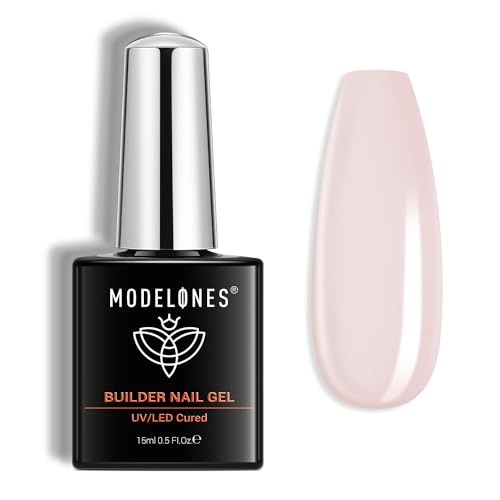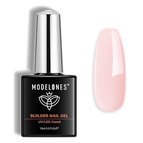 Modelones Builder Gel, 8-in-1 Barely Pink Gel Builder for Nails, Hard Gel Nail Strengthener Color Base Gel Extension Gel Nail Builder Gel in a Bottle 15 ML for Women