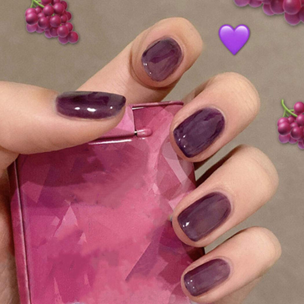 Square Press on Nails Short Fake Nails Purple Acrylic Full Cover Set for Women and Girls 24pcs