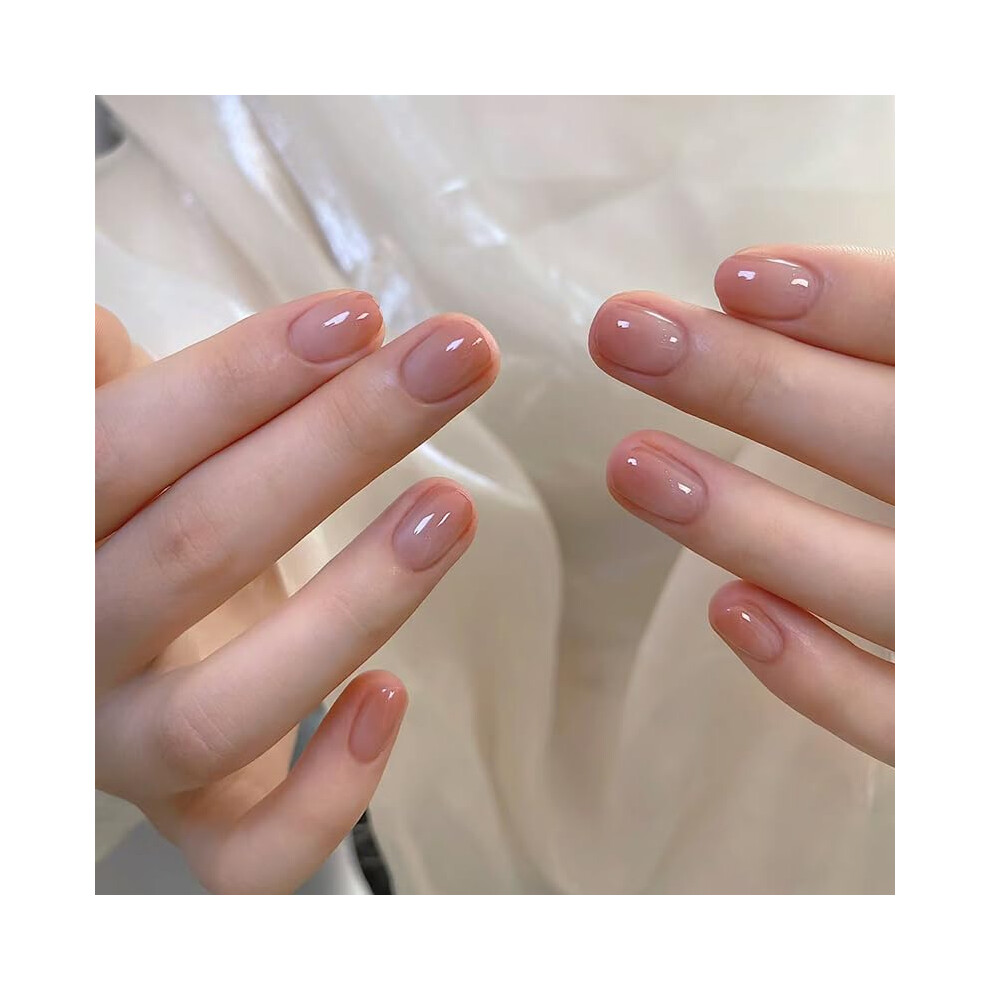 Short Almond Gradient Press On Nails Nude Glossy Fake Nails Reusable Acrylic Stick On Set 30Pcs