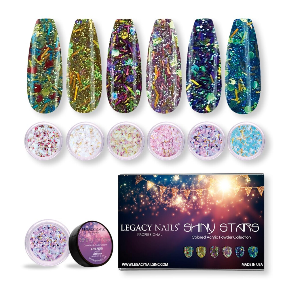 Legacy Nails Professional COLLECTION Acrylic Powder Kit 6 Colors Nail Art Set for Manicure DIY for Dip & Acrylic Nail Extensions (SHINY STARS COLLECTI