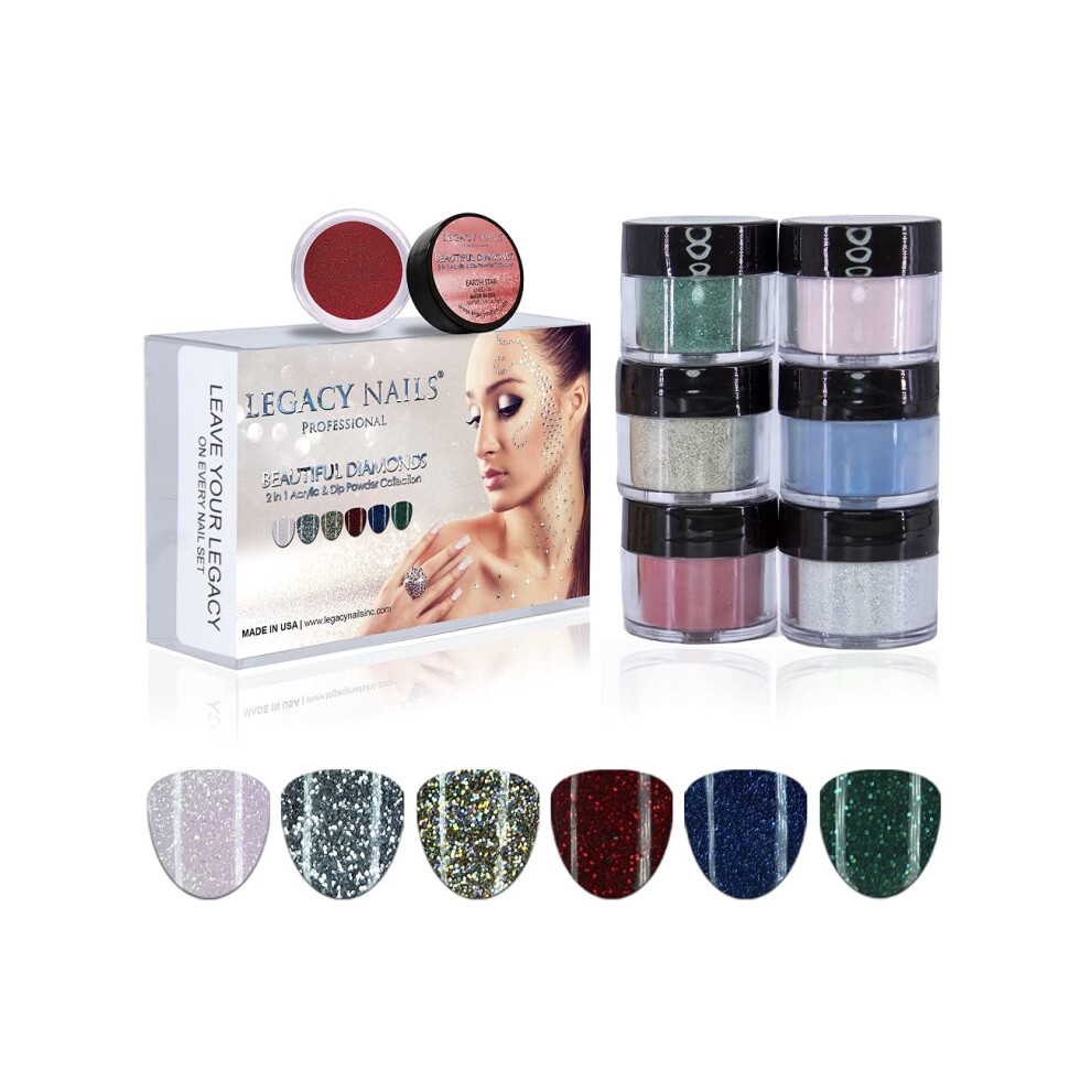 Legacy Nails Professional COLLECTION Acrylic Powder Kit 6 Colors Nail Art Set for Manicure DIY for Dip & Acrylic Nail Extensions (DIAMONDS COLLECTION)