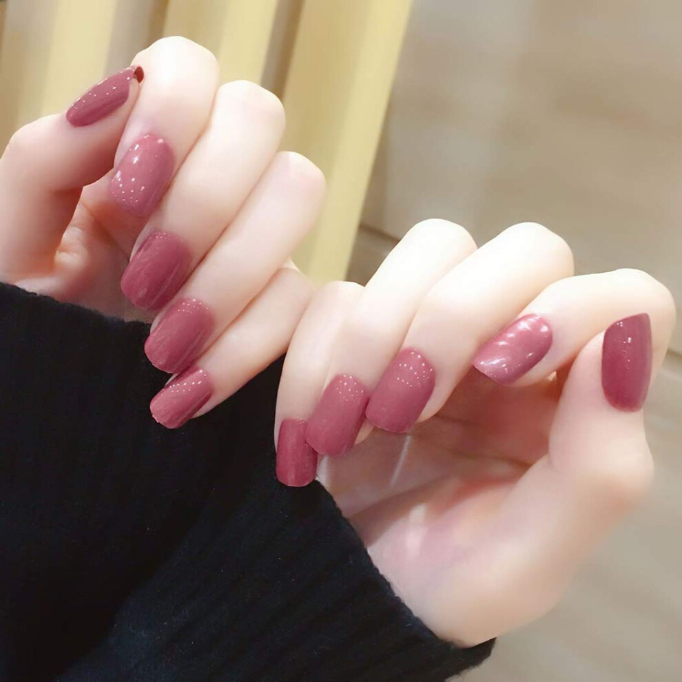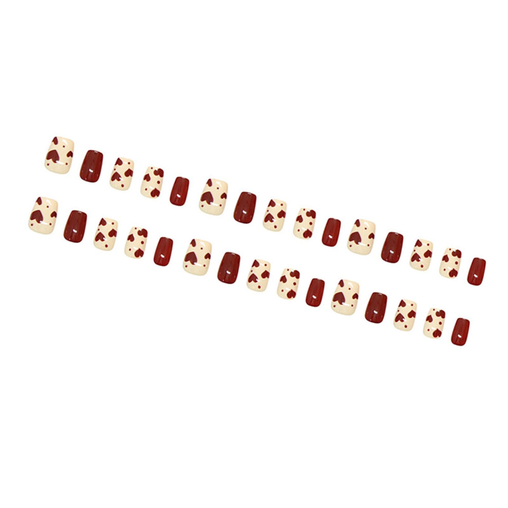Valentine Square Glossy Press On Nails 30pcs Fake Acrylic Set with Natural Finish and Multiple Sizes