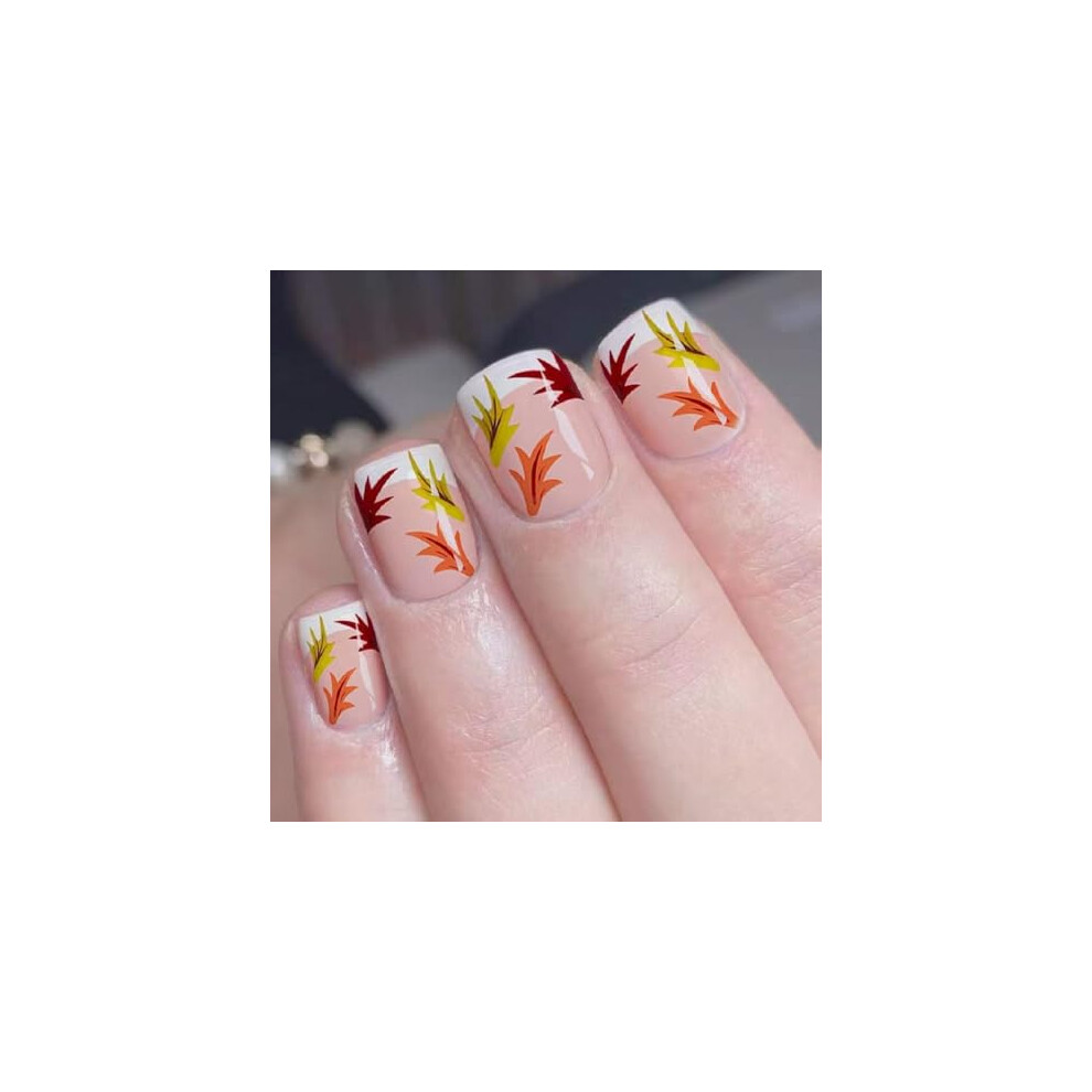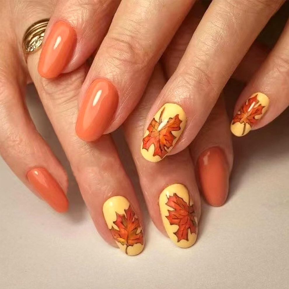 Autumn Maple Leaf Press on Nails Short Almond Thanksgiving Fake Nails Reusable Acrylic Nail Set