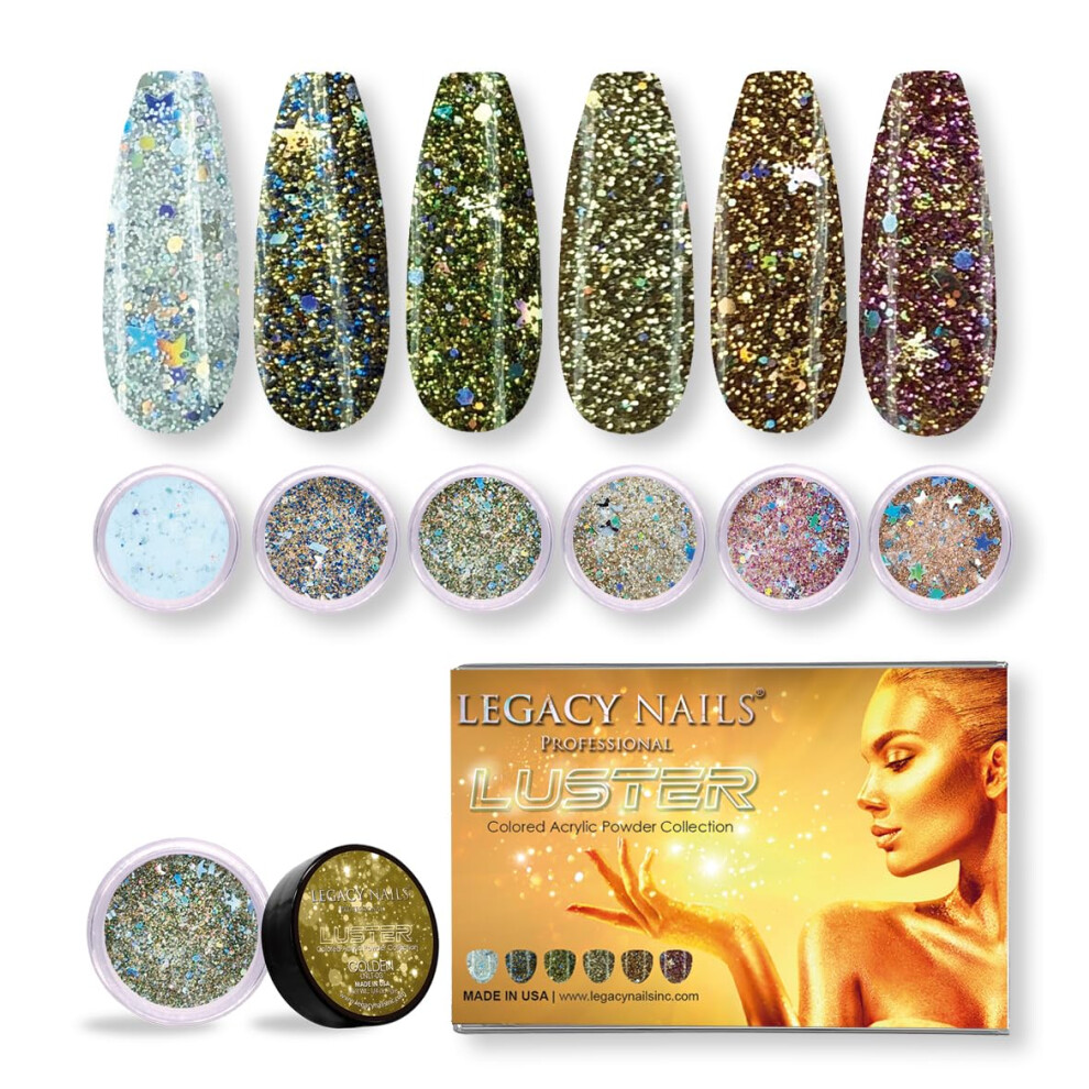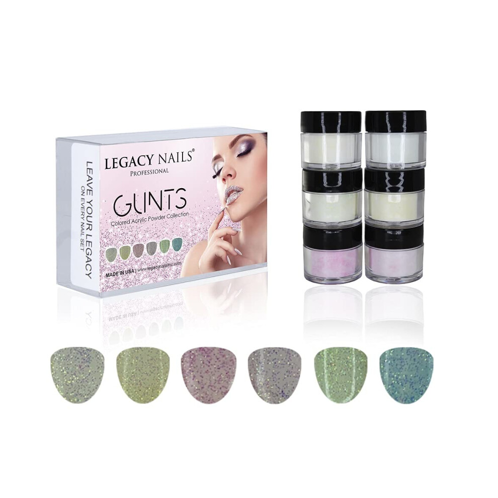 Legacy Nails Professional COLLECTION Acrylic Powder Kit 6 Colors Nail Art Set for Manicure DIY for Dip & Acrylic Nail Extensions (GLINTS COLLECTION)