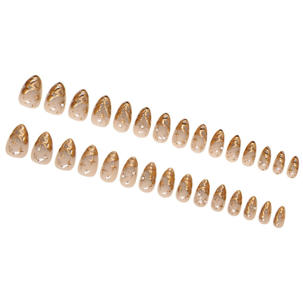 Almond Press On Nails Short Acrylic Set with Star and Moon Design Reusable Natural 24 Pcs