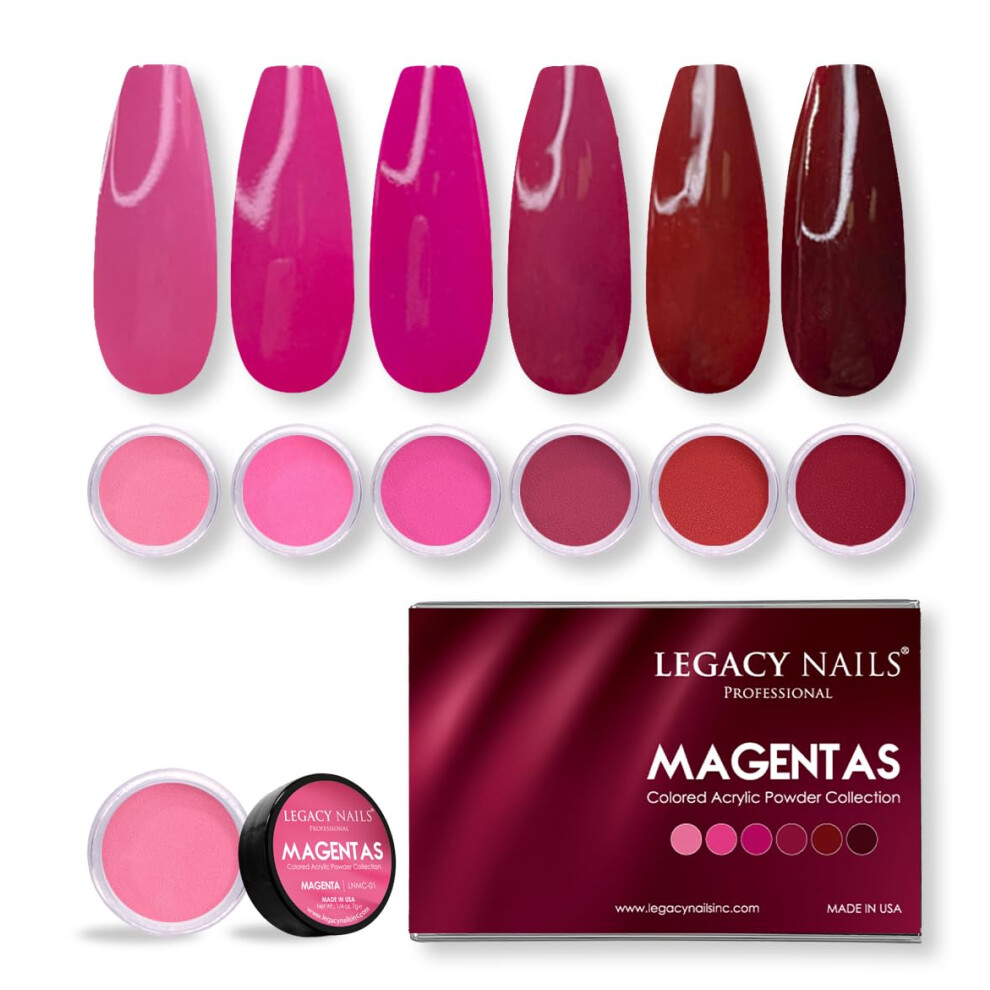 Legacy Nails Professional COLLECTION Acrylic Powder Kit 6 Colors Nail Art Set for Manicure DIY for Dip & Acrylic Nail Extensions (MAGENTAS COLLECTION