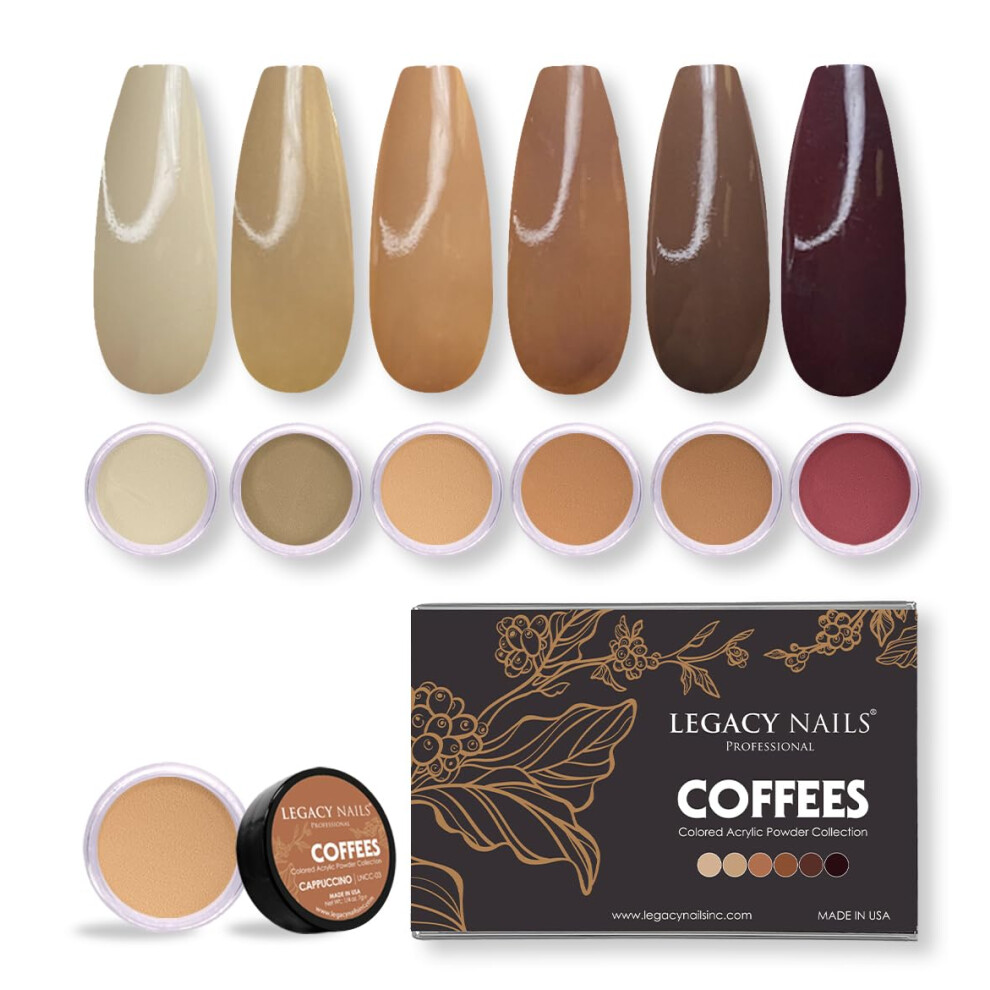 Legacy Nails Professional COLLECTION Acrylic Powder Kit 6 Colors Nail Art Set for Manicure DIY for Dip & Acrylic Nail Extensions (COFFEES COLLECTION)
