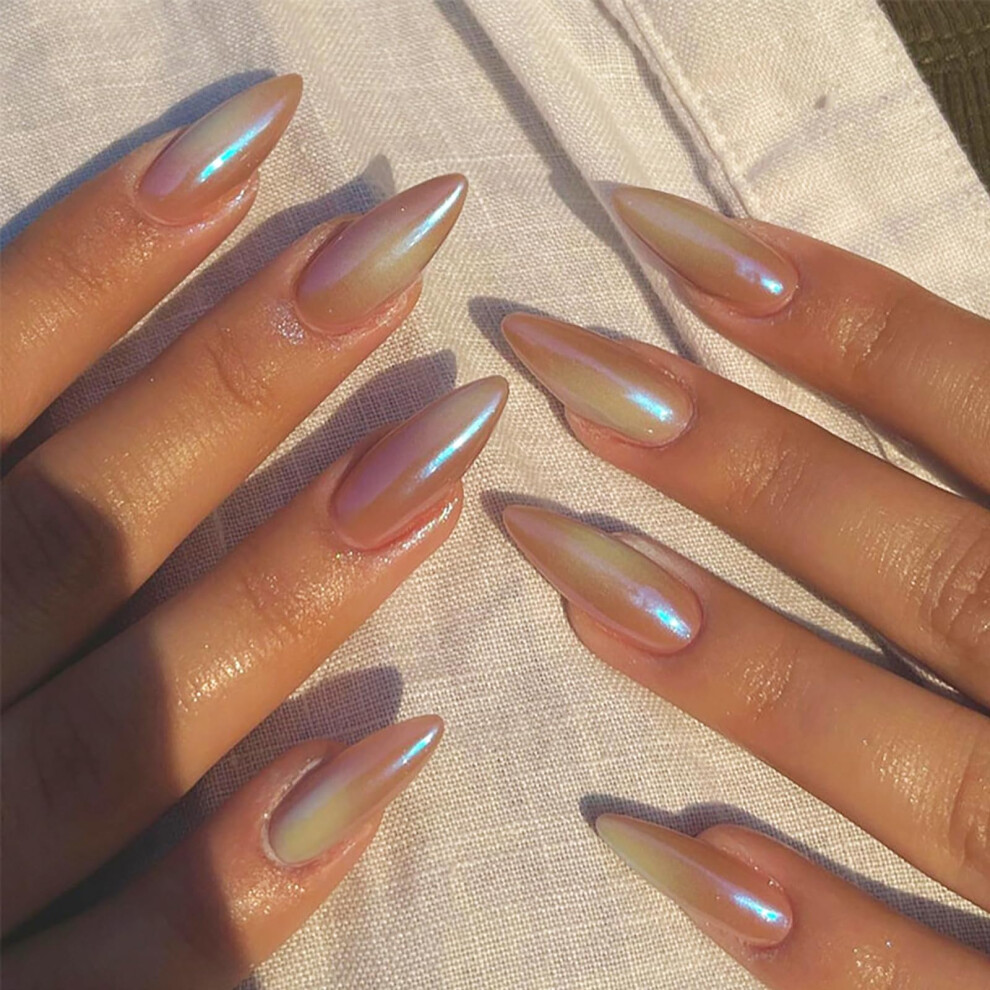 24 Pcs Colorful Aurora Press on Nails Medium Acrylic Fake Nails Set Instant Salon Look for Women and Girls