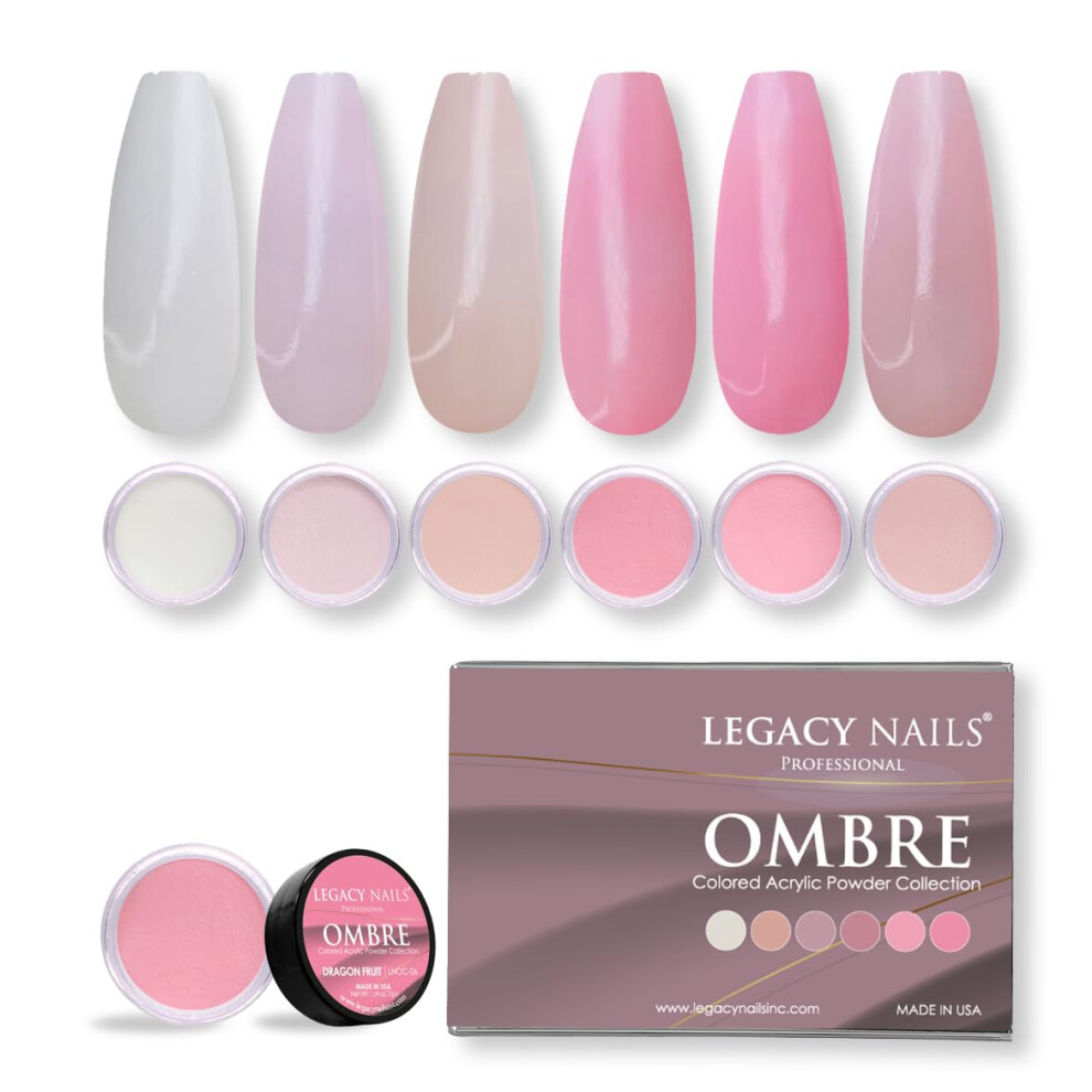 Legacy Nails Professional COLLECTION Acrylic Powder Kit 6 Colors Nail Art Set for Manicure DIY for Dip & Acrylic Nail Extensions (OMBRE COLLECTION)