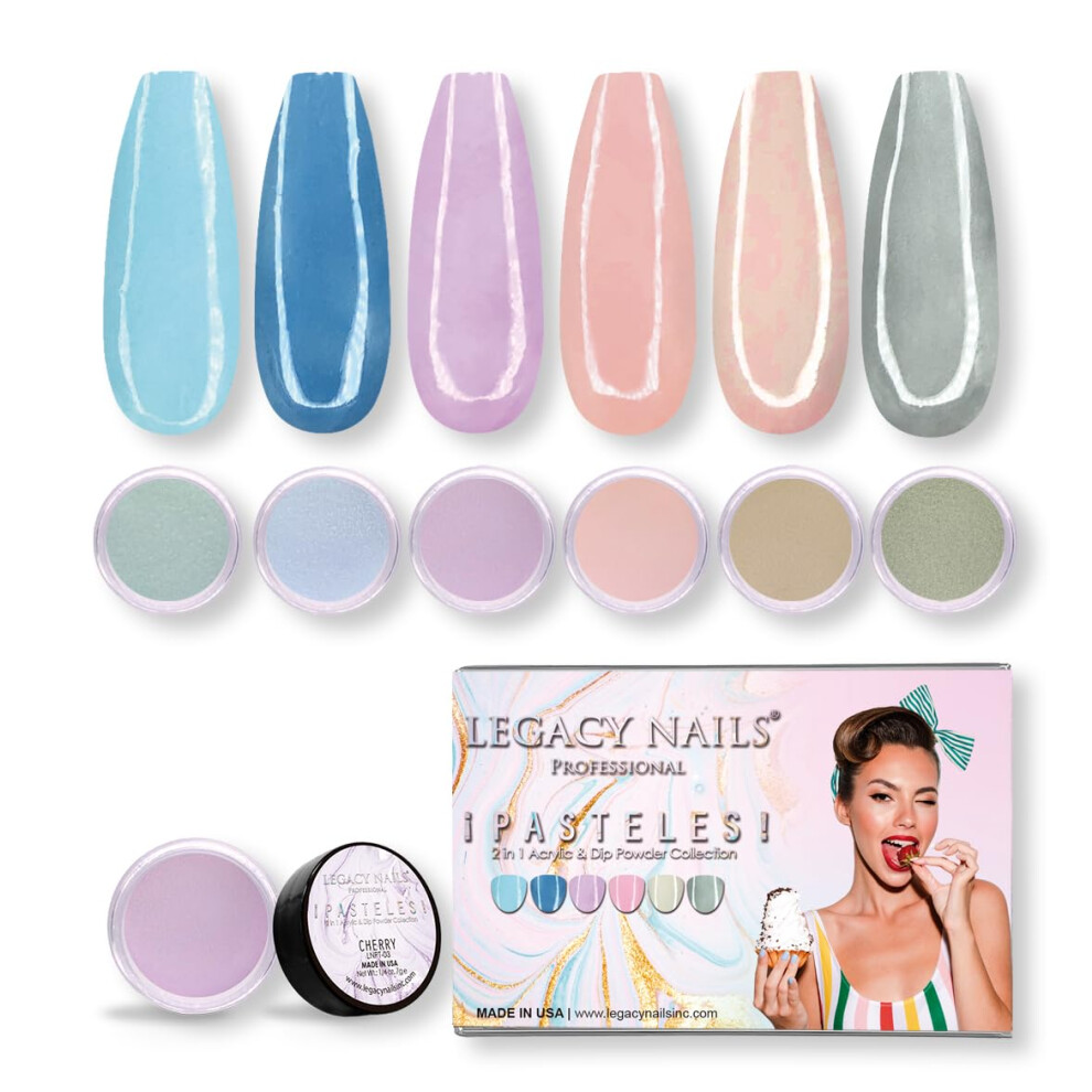 Legacy Nails Professional COLLECTION Acrylic Powder Kit 6 Colors Nail Art Set for Manicure DIY for Dip & Acrylic Nail Extensions (PASTELES COLLECTION)