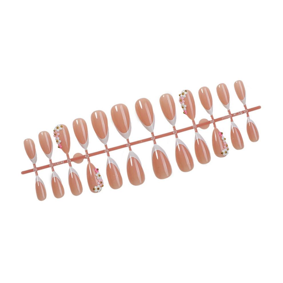 Almond Shape French Floral Press On Nails Set Acrylic False Nails Manicure for Women 24Pcs