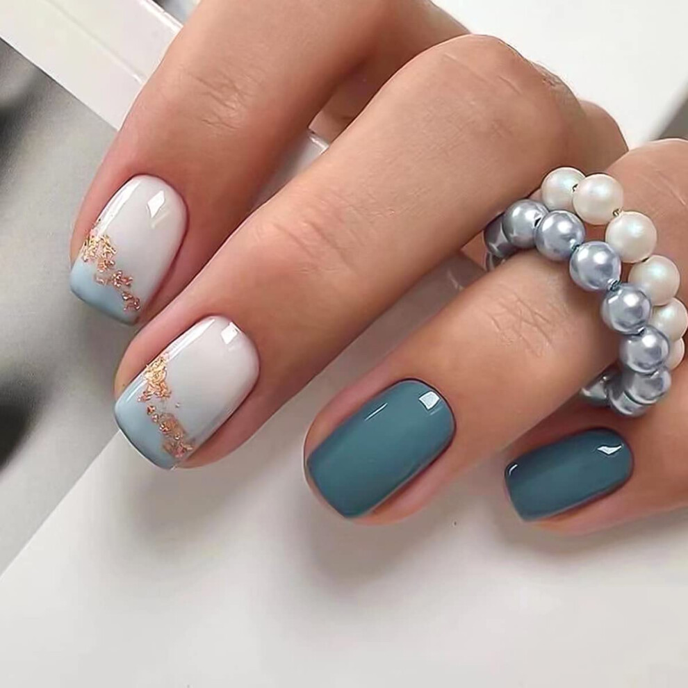 Short Blue Wave Press On Nails Acrylic False Nails Set with Glue 24PCS for Women and Girls