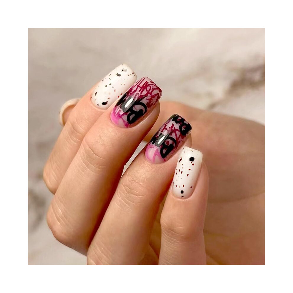 24pcs Medium Square Tip Press On Nails White Graffiti Acrylic Set with Unique Paint Splatter Design