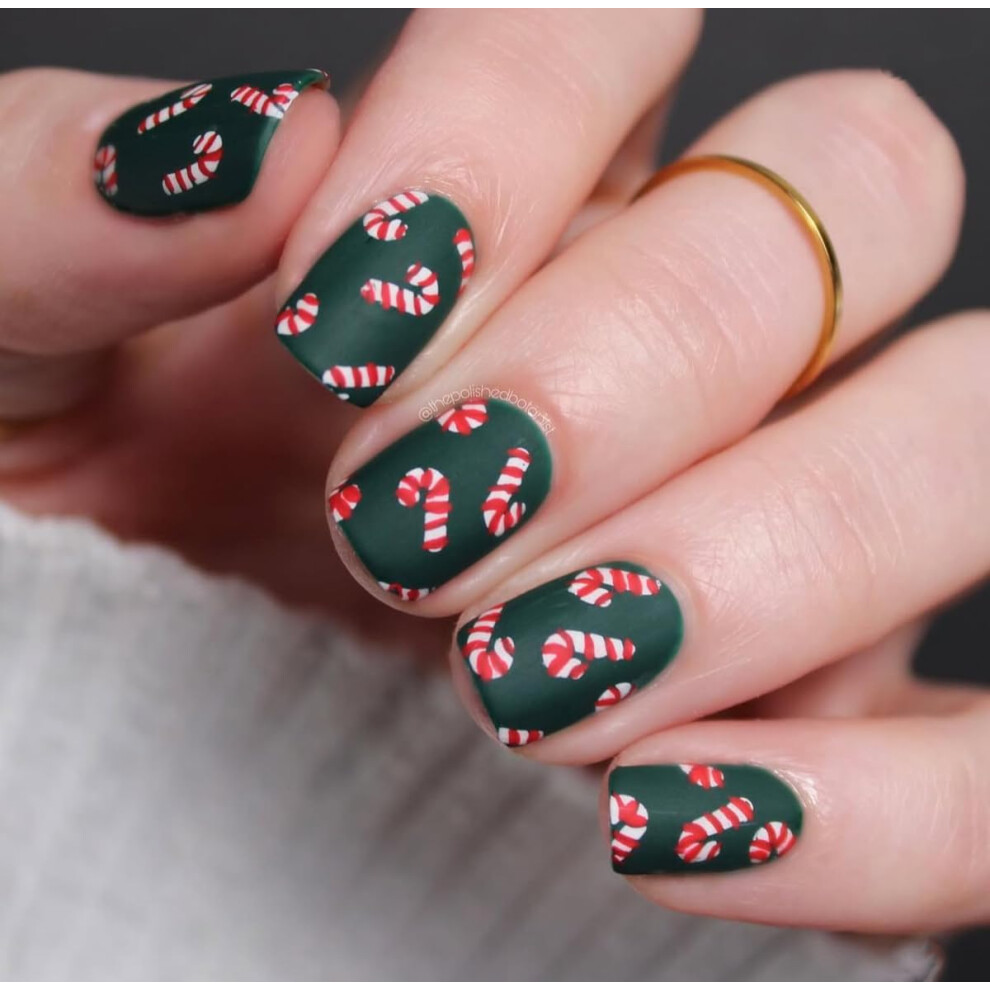 24pcs Short Square Christmas Press On Nails Green Candy Cane Fake Nails Set Holiday Acrylic Kit