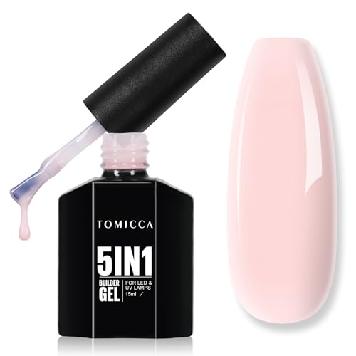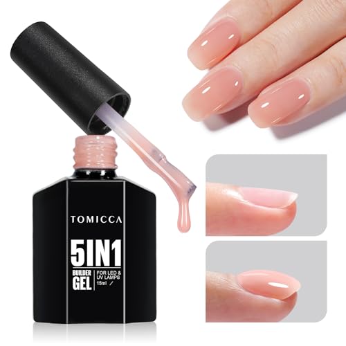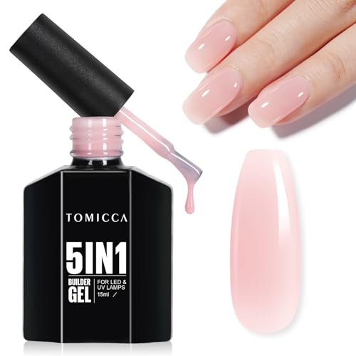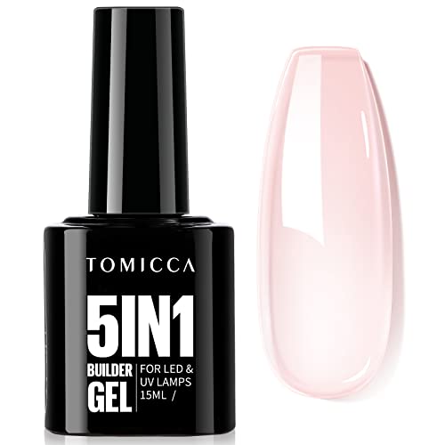 TOMICCA 5 in 1 Builder Nail Gel- 15ML Builder Base Strengthening nude Nail Gel Polish for Hard Strong Nails Tips & Extensions, UV Gel for Nails Repair, Nail Art Supplies Easy to Shape