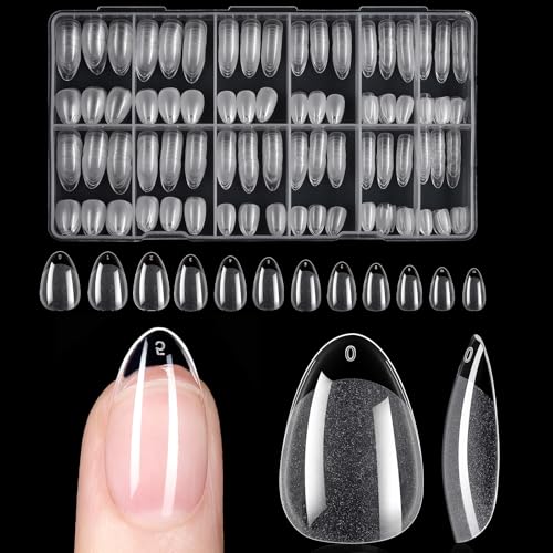TOMICCA Short Almond Nail Tips Kit 240PCS Acrylic Clear Full Cover Nail Tips Press on Nails for Gel Polish & Nail Extensions, Pre-shaped Fake Nails Strong Durable for Salon and Home Nail Art DIY
