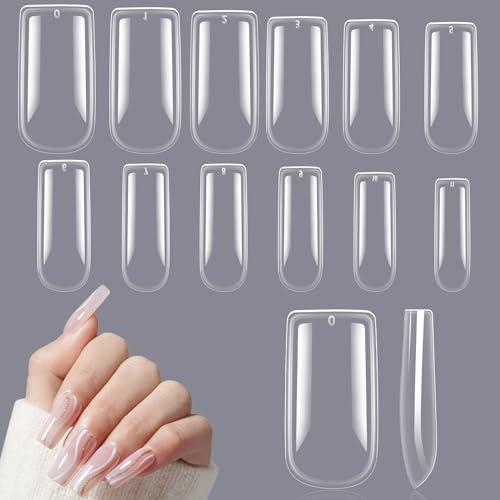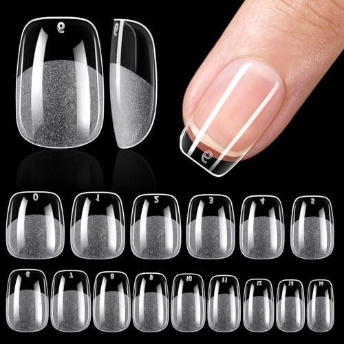 TOMICCA Extra Short Square Nail Tips, 504Pcs Clear Durable Full Cover Nail Tips for Gel Extensions Acrylic False Nails, Flexible & Sturdy Press on Nails Manicure Salon DIY at Home 12 Sizes
