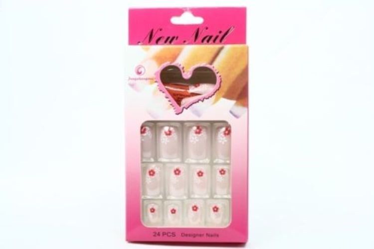 FALSE NAIL EXTENSIONS 24PCS DESIGNER NAILS GLUE INCLUDED RED DESIGN WITH FLORAL