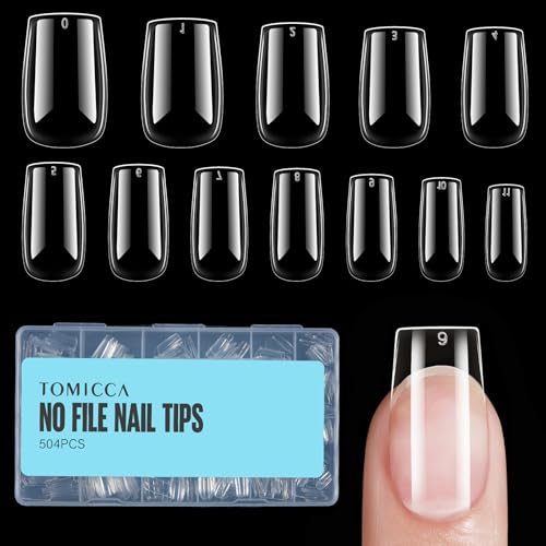 TOMICCA XS Square Nail Tips, 504Pcs Clear Durable Full Cover Nail Tips for Gel Extensions Acrylic False Nails, Flexible & Sturdy Press on Nails Manicure Salon DIY at Home 12 Sizes