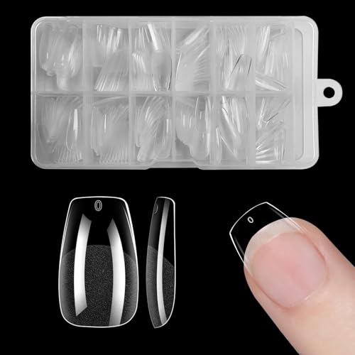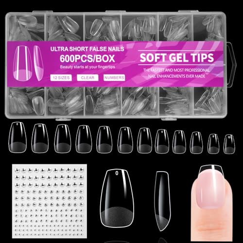 BUTBU Short Coffin Nail Tips, 600Pcs Soft Gel Full Cover Nails-Tips, Clear Acrylic False Press on Nail Tip, 12 Sizes NAIL Extensions Kit for DIY Manicure Art Salon