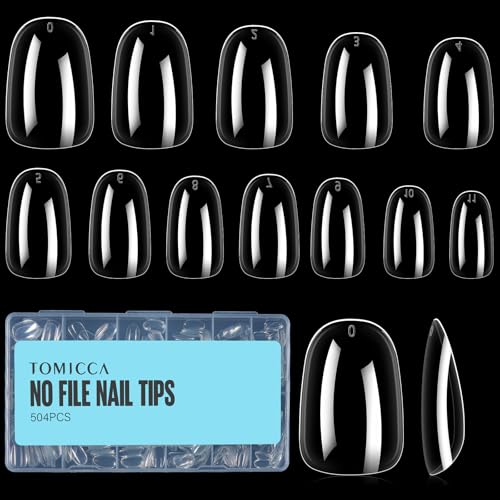 TOMICCA Short Oval Gel Nails - 504pcs Pre-Buffed No File Nail Tips, Semi-Matte Full Cover for Extensions | 12 UK Sizes Break Resistant Tips for Salon & Home DIY