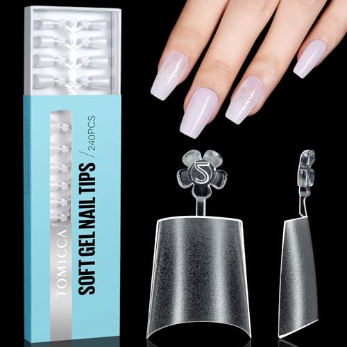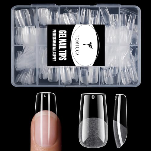 TOMICCA Medium Square Nail Tips, 240PCS Half Matte Soft Gel Tips, Full Cover Clear Acrylic False Nails for Nail Extensions DIY Manicure Art, 12 Sizes