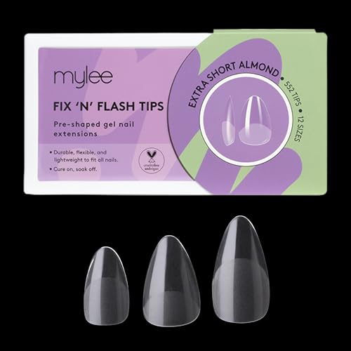 Mylee Fix N Flash Soft Gel Tips - Short Almond - 552 PCS, Full Cover Soft Gel Nail Tips, Nail Art Extensions, Flexible & Resistant, 12 Different Sizes, Fit All Nails