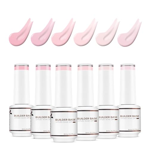 Nicedeco 8 in 1 Builder Base Strengthening Gel, 6x8ml UV/LED Clear Building Nail Gel in a Bottle,for Nails Tips & Extensions, Gel Polish Nail Repair Nail Strengthen KIT7