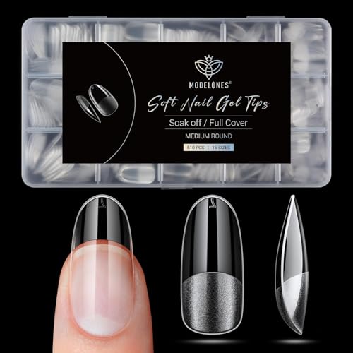 Modelones Extra Short Oval Round Nail Tips -510Pcs Soft Nail Tips for Gel Extensions Pre-shaped Half Matte Full Cover Clear Acrylic Gel Kit False Press on Nails Manicure Salon DIY at Home 15 Sizes
