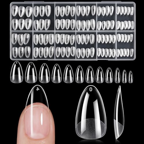 240pcs Almond Nail Tips - 12 Sizes, Clear False Nails for Gel Extensions & DIY