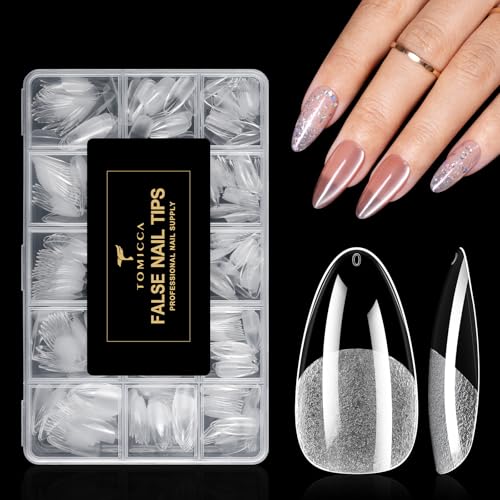 TOMICCA Medium Almond Nail Tips, 510Pcs Full Cover Soft Gel Nail Tips, Clear Acrylic Fake Almond Nails Press On for Nail Extensions DIY Manicure Nail Art Salon, 15 Sizes