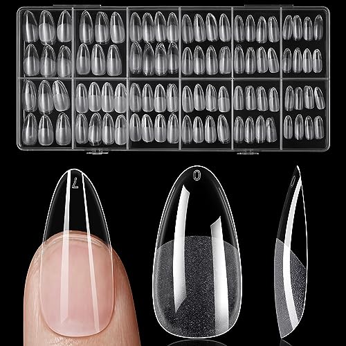 TOMICCA Medium Almond Nail Tips, 240Pcs Half Matte Clear Soft Gel Almond Shaped Nails Tip, Full Cover Acrylic Fake Nails for French Nail Extensions DIY Nail Art, 12 Sizes