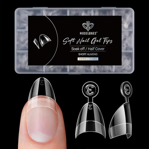 Modelones Extra Short Almond Nail Tips -510Pcs Nail Tips for Gel Extensions Pre-shaped Half Cover Clear Acrylic Gel Kit False Press on Nails Manicure Salon DIY at Home 15 Sizes