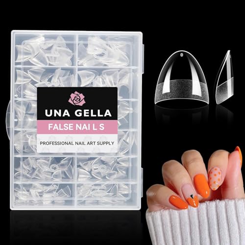 UNA GELLA Nail Tips, 504PCS Clear False Nail Medium Almond Shape For Gel Extensions - 12 Sizes Soft Acrylic Gel Press On Nails No C Curve Gift For Diy At Home