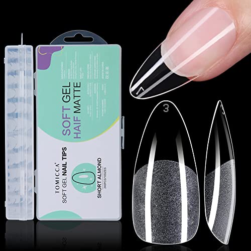 TOMICCA Short Almond Nail Tips, 240Pcs Half Matte Clear Soft Gel XS Short Almond Nails Tip, Full Cover Acrylic Fake Nails for French Nail Extensions DIY Manicure Art, 15 Sizes
