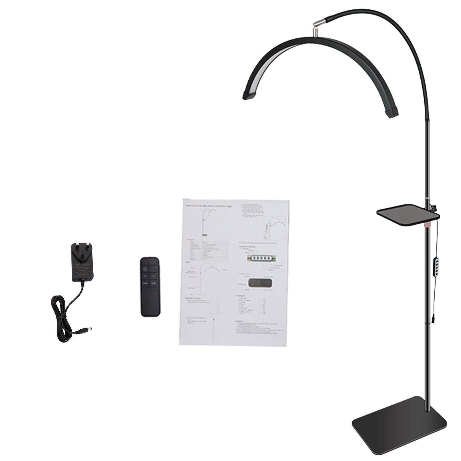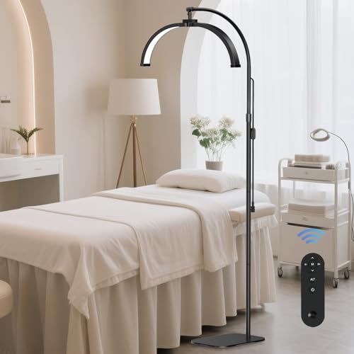 SMOCTAR Half Moon Light for Eyelash Tech, Foldable Lash Lamp for Eyelash Extensions, LED Floor Lamps with Phone Holder, Esthetician Beauty Light for Tattoo, Nails, Skincare - Black
