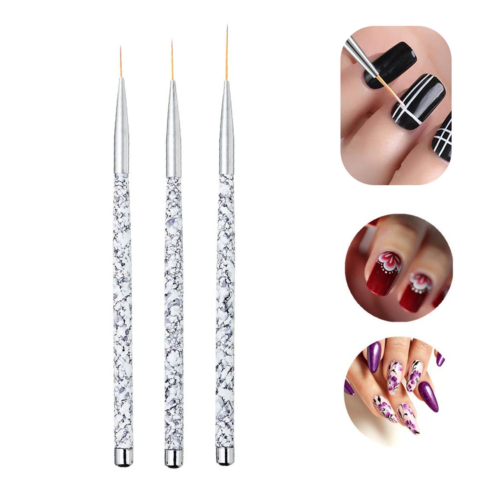 3pcs Nail Art Liner Brush Set Drawing Brushes For UV Gel Nails Nail Extensions