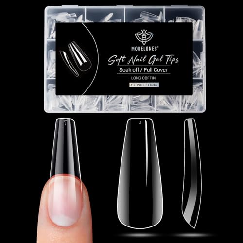 Modelones Long Coffin Nail Tips -510Pcs Clear Nail Tips for Gel Extensions Pre-shaped Full Cover Acrylic Gel Kit False Press on Nails Manicure Salon DIY at Home 15 Sizes