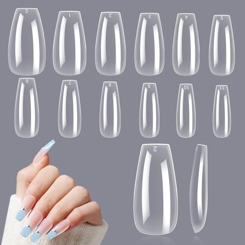 Makartt Durable Clear Long Almond Nail Tips, 500pcs Flexible & Sturdy Full Cover False Nails, Strong Hold, Easy to Shape, Press on Nails, Fake Nails, Acrylic Nail Tips for Gel Extensions