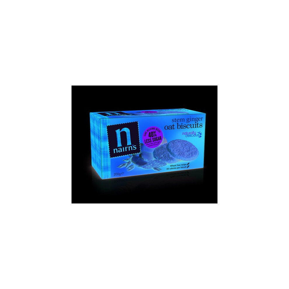 Nairn's Stem Ginger Oat Biscuits - 200g - Wheat Free Biscuits - Healthy Snacks - 44 Calories per Biscuit - Less Sugar - Source of Fibre - Pack of 12