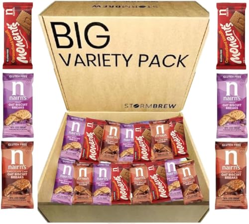 Nairn’s Gluten Free Variety Pack Oat Biscuit Breaks, Flavors inc. Chocolate Chip, Fruit, Caramelised Biscuit Moments. Pack of 16 (3 Biscuits Per Pack)