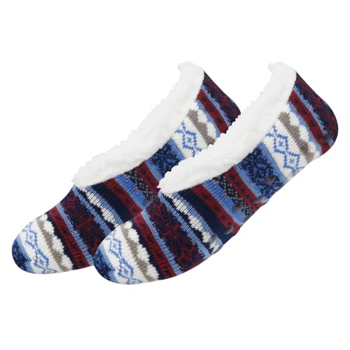 Generisch Fluffy winter slippers socks with non-slip sole for ultimate comfort, cosy warmth in the cold season as a perfect companion, navy, One Size
