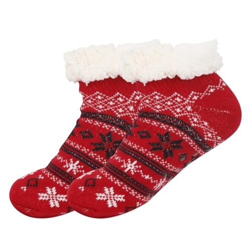 Generisch Fluffy winter slippers socks with non-slip sole for ultimate comfort, cosy warmth in the cold season as a cosy companion, red, One Size