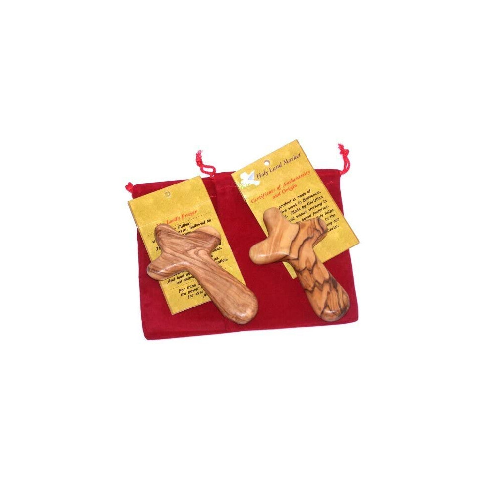 Holy Land Market Comfort/Holding Cross Also Known as Palm or Hand Cross With Velvet Bag And Two Certificates (4 Inches) (2 Crosses) (1)