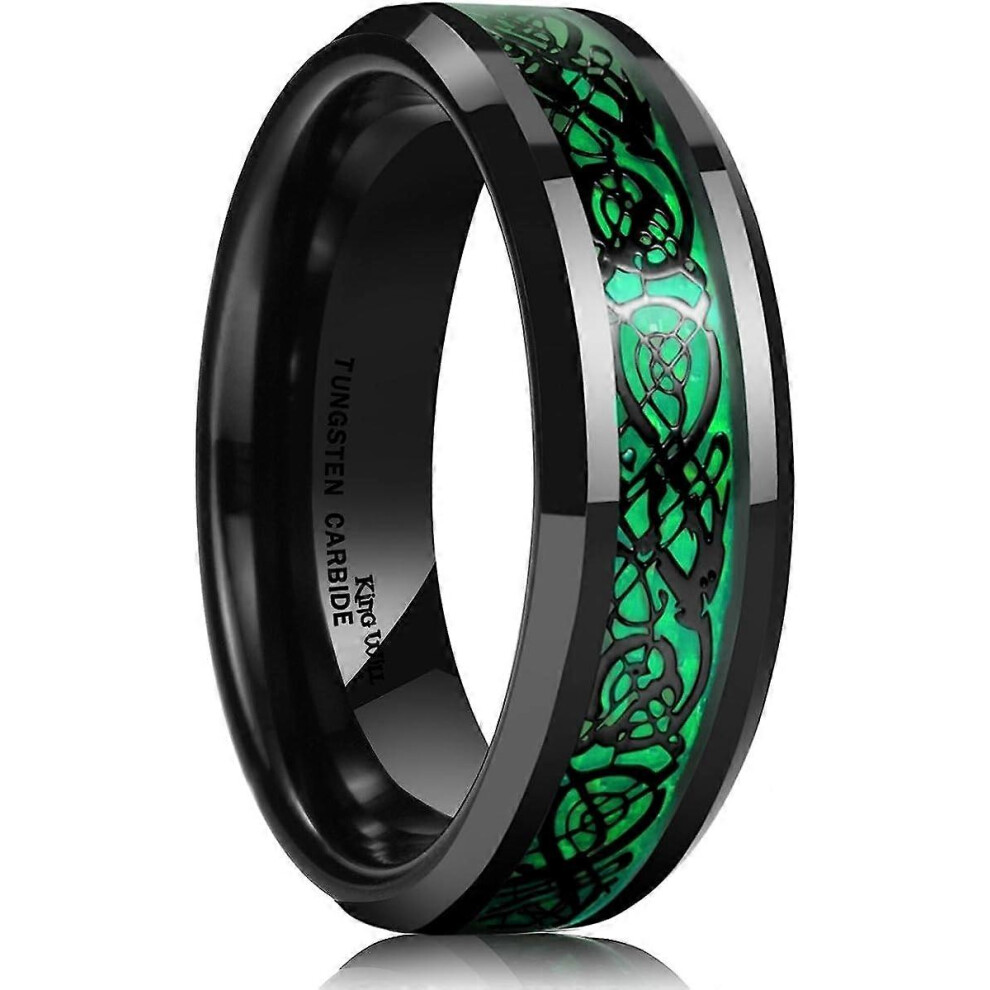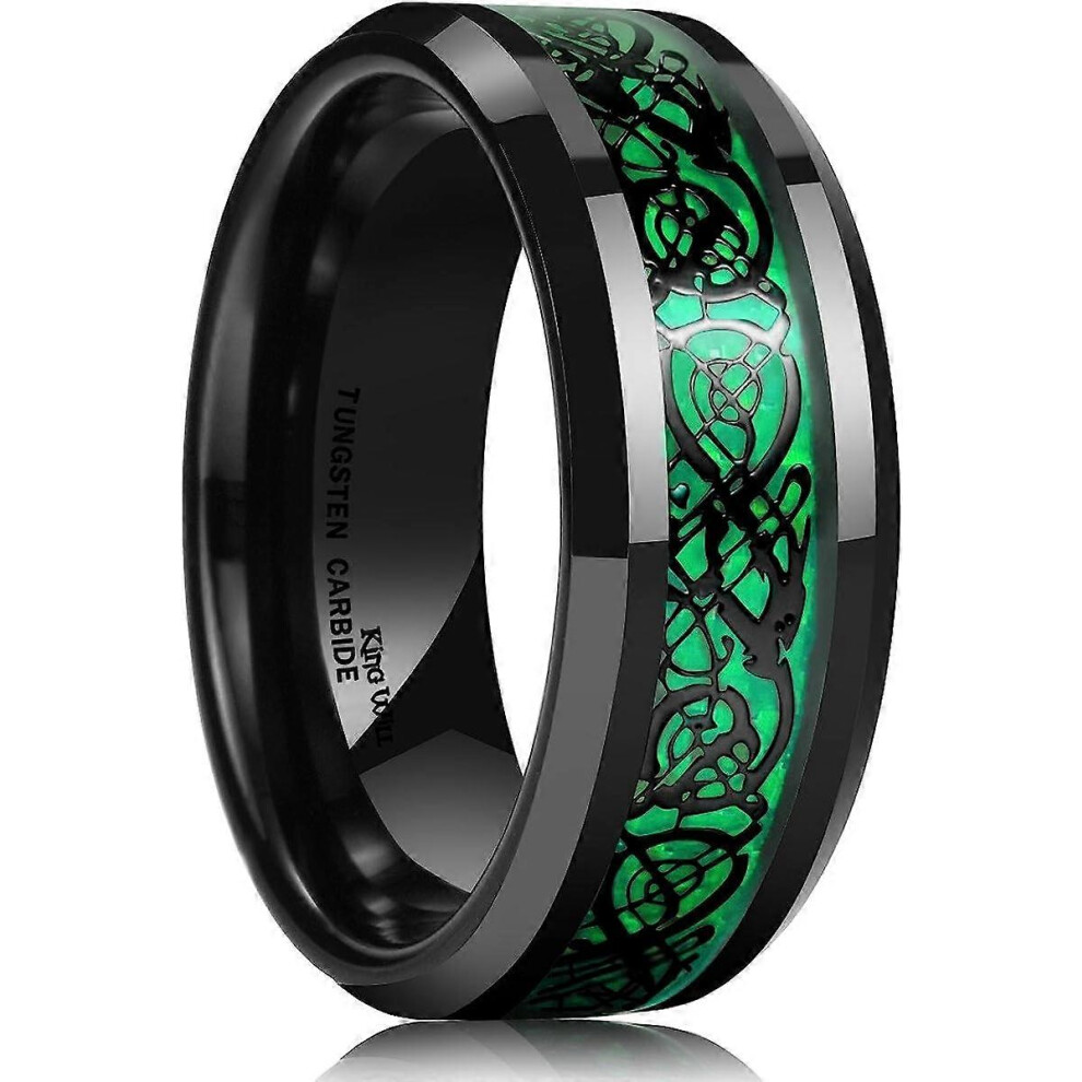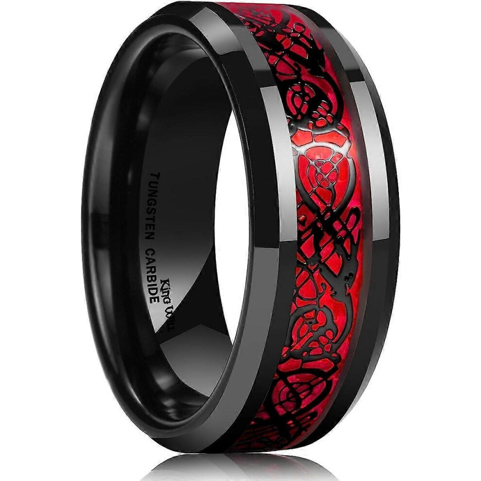 (As show, One size) King Will DRAGON Men's 8mm/6mm/5mm Red/Green Carbon Fiber Black Celtic Dragon Tungsten Carbide Ring Comfort Fit Wedding Band7