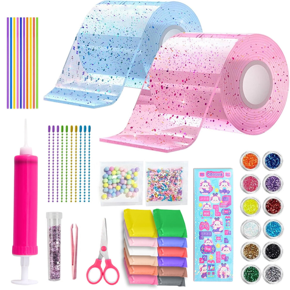 vamei Nano Tape Bubbles Kit Craft Box for Kids with Nano Magic Tape, Clay, Beads, Kawaii Stickers and Accessories for Making Bubbles Nanotape Arts and Crafts Decompression Gifts for Kids Girls Boys