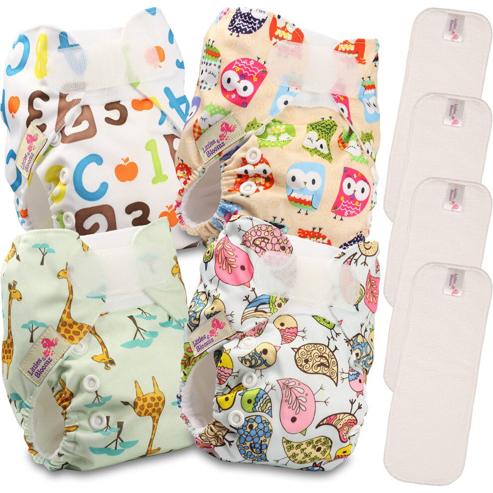 Littles & Bloomz Pocket Reusable Nappies Newborn and Premature, 4 Microfibre Inserts, NB-402MF4